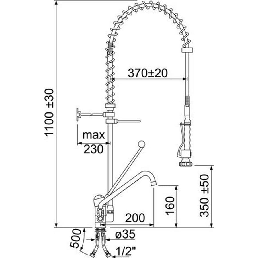 La douche vaisselle 1100 mm version avec mélangeur monotrou monocommande à levier long est conçue pour offrir confort d’utilisation et fiabilité au quotidien. Équipée d’une cartouche à disques céramiques ø 40 mm, elle garantit une régulation précise du débit et de la température. Son col de cygne ø 20x200 mm avec une hauteur de 160 mm assure une portée optimale pour les opérations de lavage.