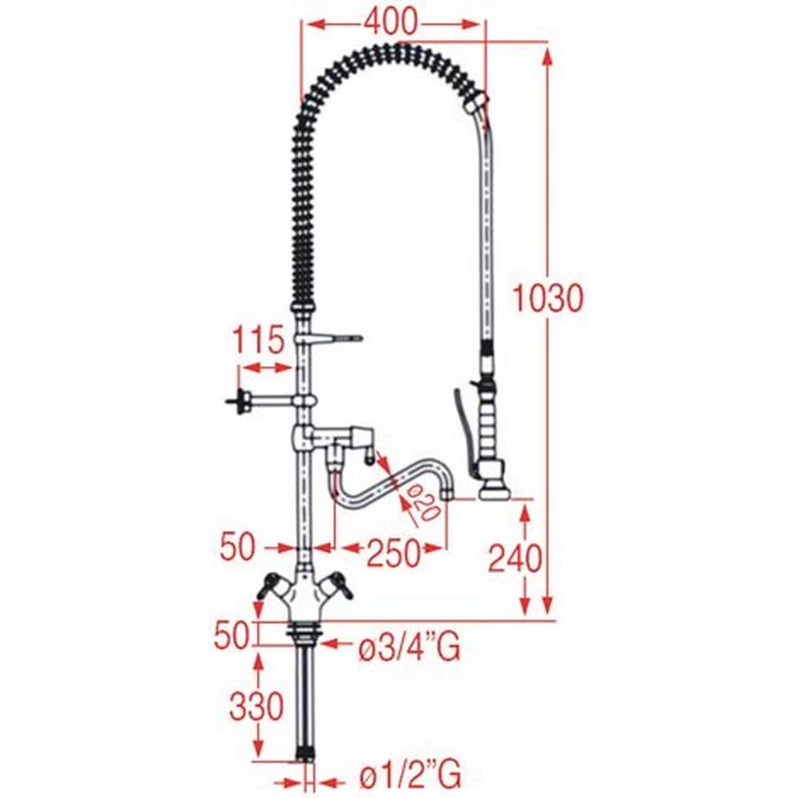 • Col de cygne : ø 20 x 250 mm, hauteur 249 mm