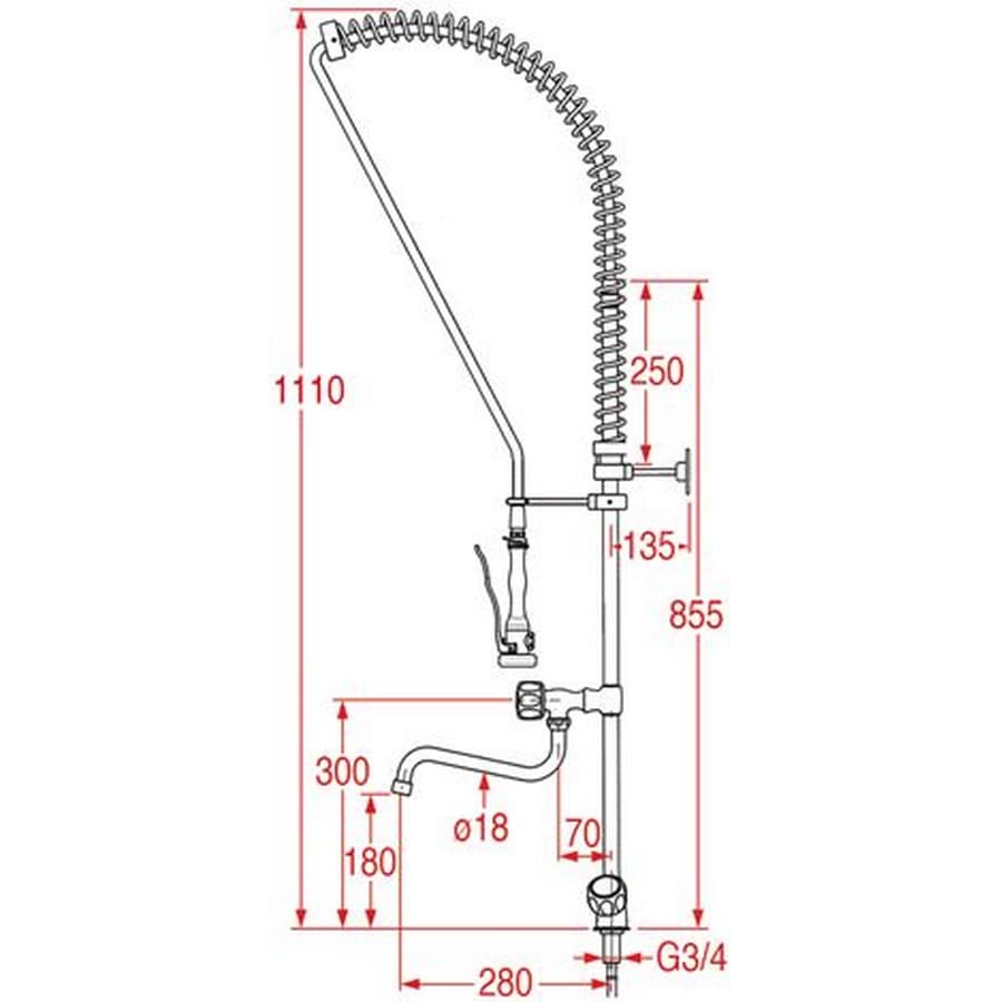 La douche-vaisselle de prélavage ERA 1110 mm est conçue pour offrir efficacité et confort sur les postes de lavage. Son mélangeur monotrou avec manettes circulaires et robinet horizontal permet une gestion précise des débits et de la température, adaptée aux usages intensifs en cuisine professionnelle.