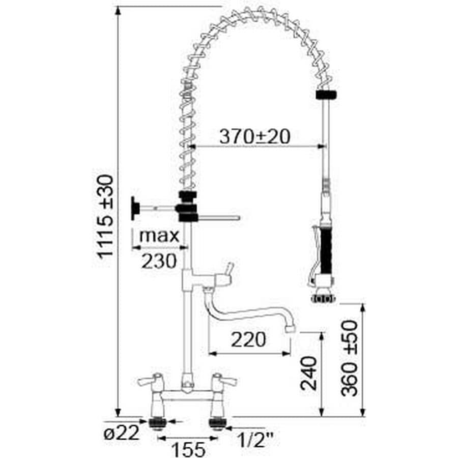 La douche vaisselle prélavage classic 1115 mm avec robinet est conçue pour répondre aux besoins des postes de lavage nécessitant efficacité et précision. Son mélangeur bitrou avec manettes à levier et son robinet mono-eau offrent un contrôle fluide du débit, tout en assurant une utilisation confortable et durable.