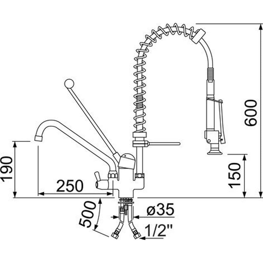 Douche vaisselle prélavage Classic 600 mm avec mélangeur mono-commande PIECE D'ORIGINE