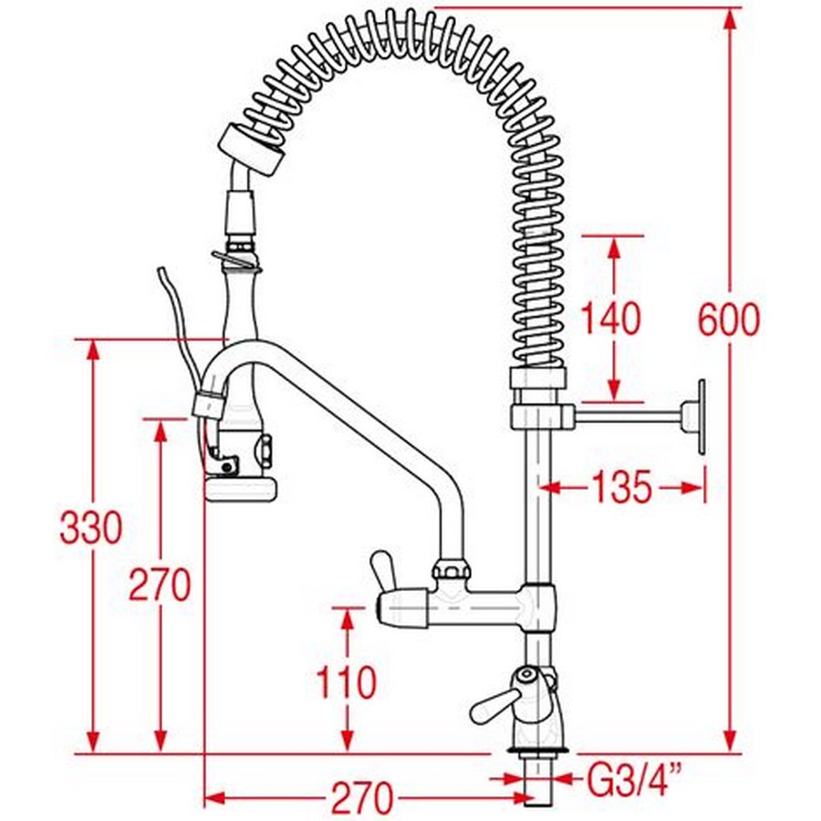 La douche-vaisselle prélavage MONOLITH ERAMINI192P ERA 600 mm est conçue pour offrir confort d’utilisation et efficacité lors des opérations de lavage et de rinçage. Son mélangeur monotrou avec manettes à levier et son robinet horizontal permettent une utilisation polyvalente et un contrôle précis de l’eau.