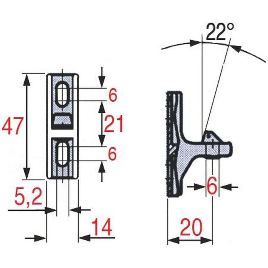 • Gâche intérieure  Inclinaison 22°