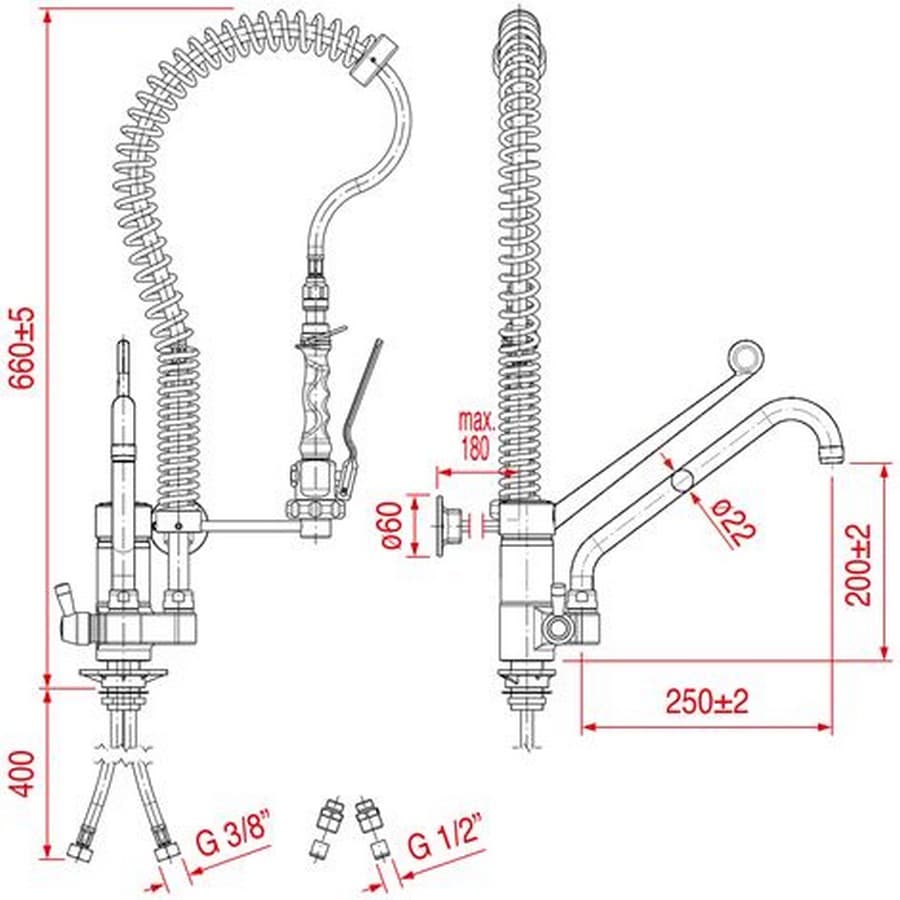 Le groupe douche mignon H 600 RDF RUB.DEL FRIULI référence 00958503 est conçu pour les installations nécessitant un équipement compact et fonctionnel avec set de prélavage. Sa configuration avec levier long et col de cygne assure une utilisation confortable et un contrôle précis du débit, tout en s’intégrant facilement aux systèmes sanitaires, de réfrigération et de ventilation.