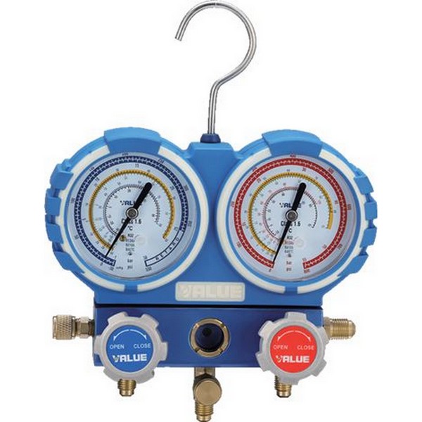 Le manomètre Value à 2 voies est conçu pour une utilisation professionnelle dans les systèmes de réfrigération et de climatisation. Il est compatible avec les fluides frigorigènes tels que R410A, R407C, R32 et R134a. Ce manomètre offre une haute précision et une grande fiabilité grâce à ses jauges de classe 1,6.