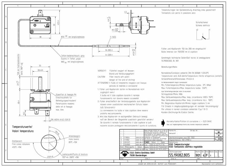 Thermostat Monophasé EGO 5519082805 5519082808 55.19082.805 55.19082.808 5513082080 Température 85-455°C PIECE D'ORIGINE